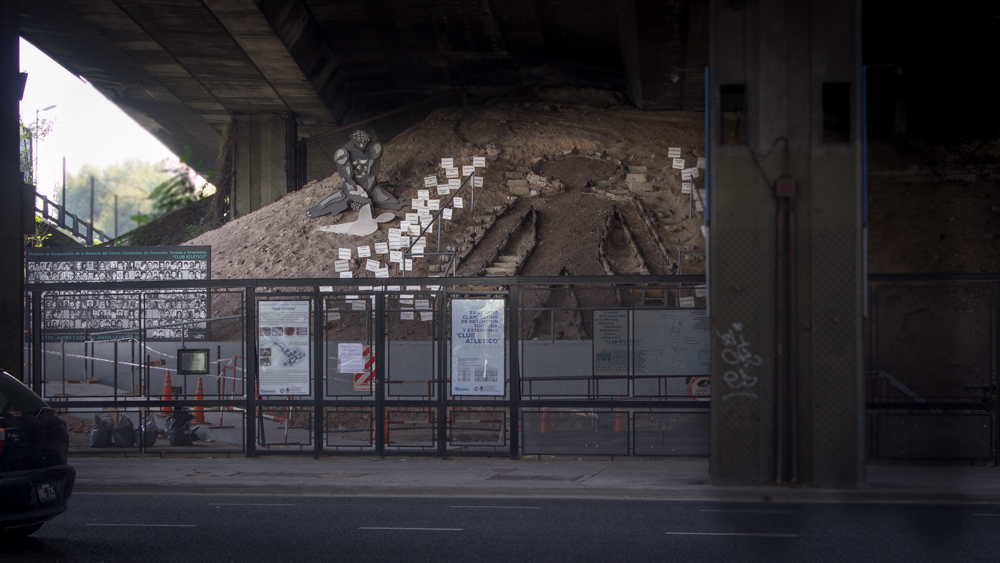 Por otra parte, una de las particularidades de este sitio es el haber sido derribado para construir la Autopista y haber quedado totalmente bajo tierra. Organismos de derechos humanos y sobrevivientes del Club Atlético reclamaron durante muchos años la excavación del sitio donde el centro clandestino de detención había funcionado, con la convicción de que aún quedaban pruebas y huellas firmes de aquel espacio.